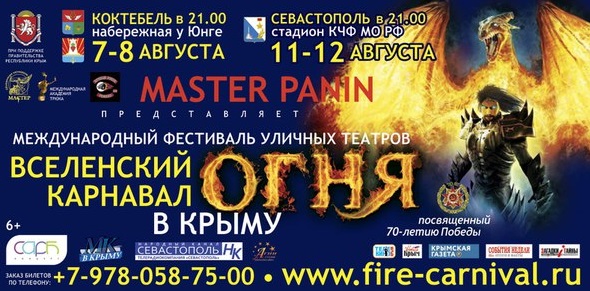 С 7 по 12 августа впервые в Коктебеле и Севастополе пройдёт международный фестиваль уличных театров и огненных шоу «Вселенский карнавал огня»2015.