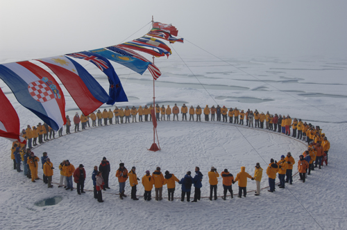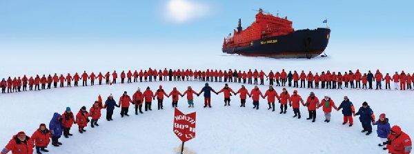 Пассажиры атомного ледокола «50 Лет Победы» - а это 121 человек - достигли - Северного полюса в ходе круиза, завершившегося 1 июля 2014 года. По достижение “Вершины мира” было устроено барбекю прямо на льду и для всех желающих экстрималов можно было искупаться в проруби. Заветный апогеем экспедиции является уже ставший традицией интернациональный хоровод вокруг заветной точки 90*С.Ш., тем самым совершив самое короткое кругосветное путешествие! Благодаря пассажирам, экипажу корабля и участникам экспедиции мы можем увидеть поистине завораживающие пейзажа ледяного царства.
