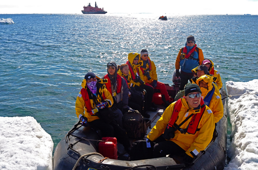 Путешествие к Северному полюсу проходит на борту самого мощного атомного ледокола в мире – ледоколе «50 Лет Победы» - судне, стоимостью более 2 млрд долларов, которое по сути есть целый город на воде. В ходе экспедиции прошло посещение легендарного архипелага Земля Франца-Иосифа. В ходе экспедиции все пассажиры ледокола могли увидеть белых медведей, моржей и тюленей, которые порой казалось позировали подходя ближе к борту судна.