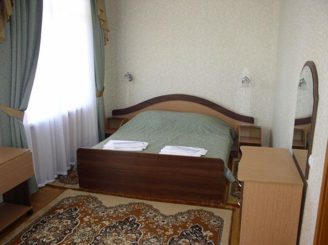 В номере: прихожая, ванная комната, жилая комната, площадь комнаты в номере – 9-10 кв.м. Мебель: односпальная кровать, столик, тумбочка, встроенный платяной шкаф.. На окнах- портьеры, тюль. Пол – ковролин, на лоджии набор пластиковой мебели. Возможность дополнительного места.