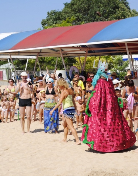 Пляж: собственный благоустроенный огороженный песчаный пляж в 500 м от корпусов, оборудованный навесами, душевыми, раздевалками, питьевыми фонтанчиками, медпункт, воллейбольные площадка, анимация.