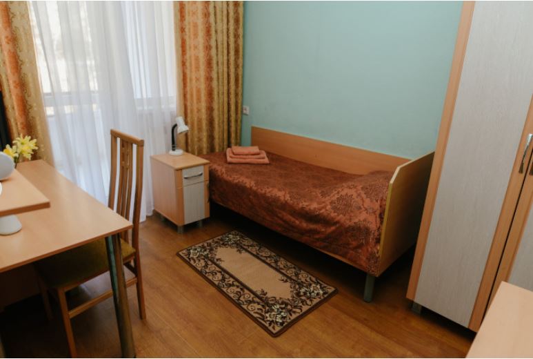 Этот небольшой одноместный номер блочного типа один из самых экономичных вариантов для размещения в санатории. Туалет и душевая рассчитаны на использование постояльцами двух смежных номеров. В номере есть все, что необходимо для комфортного отдыха – письменный стол, зеркало, шкаф для одежды, прикроватная тумбочка, настольная лампа. Номер оснащен телевизором, холодильником, кондиционером. Особый уют придает номеру балкон с видом на реликтовый парк санатория.