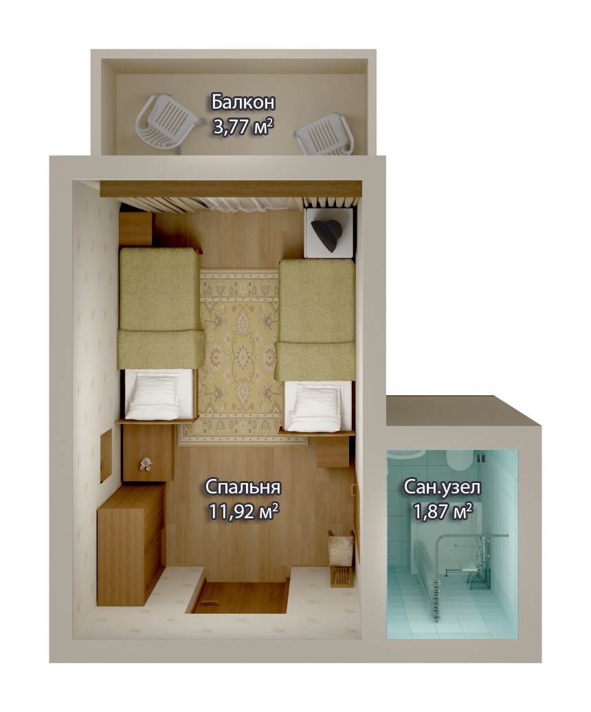 В номере: душ, туалет, 2 телевизора, холодильник, электрочайник, есть возможность размещения 2 дополнительных мест (кресло-кровать).
