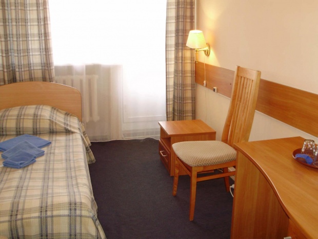 Однокомнатный номер со всеми удобствами (холодильник, телевизор, душ, совмещенный с санузлом, 2 кровати раздельные, 2 стула, 2 тумбочки, шкаф для одежды и обуви, посуда: графин, 2 стакана, половое покрытие - паркет). Дополнительное место - мягкая раскладушка. Внимание! на 5 этаже корпуса - номера без балконов, этаж мансардный.