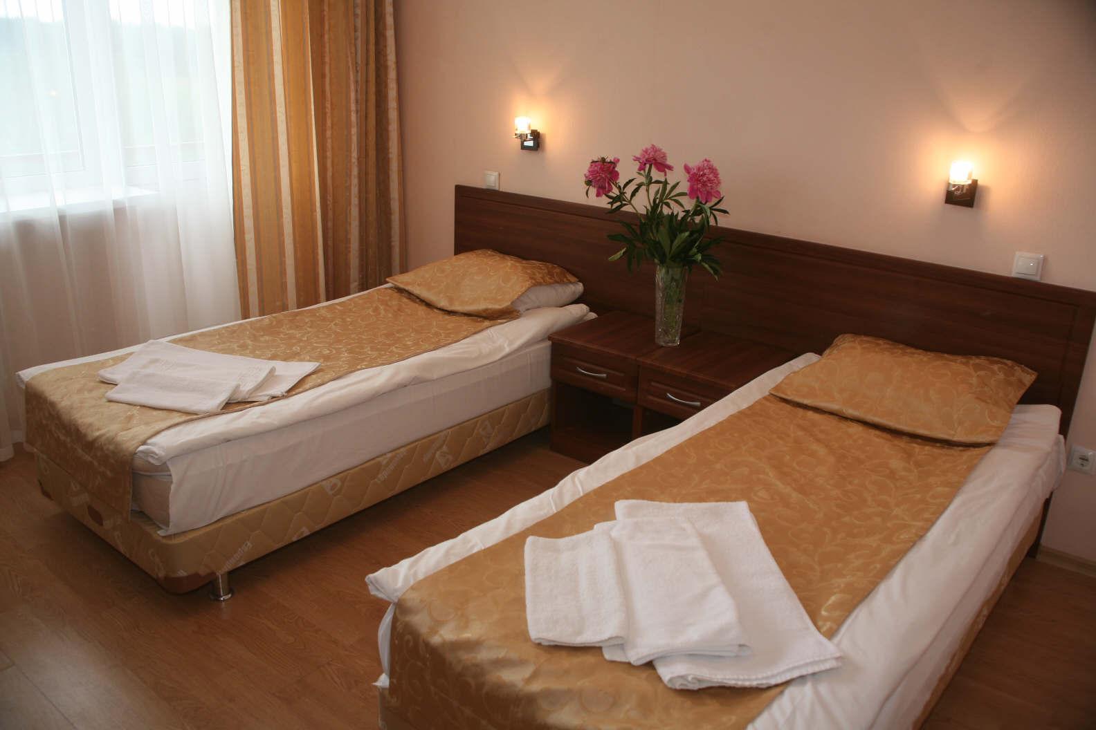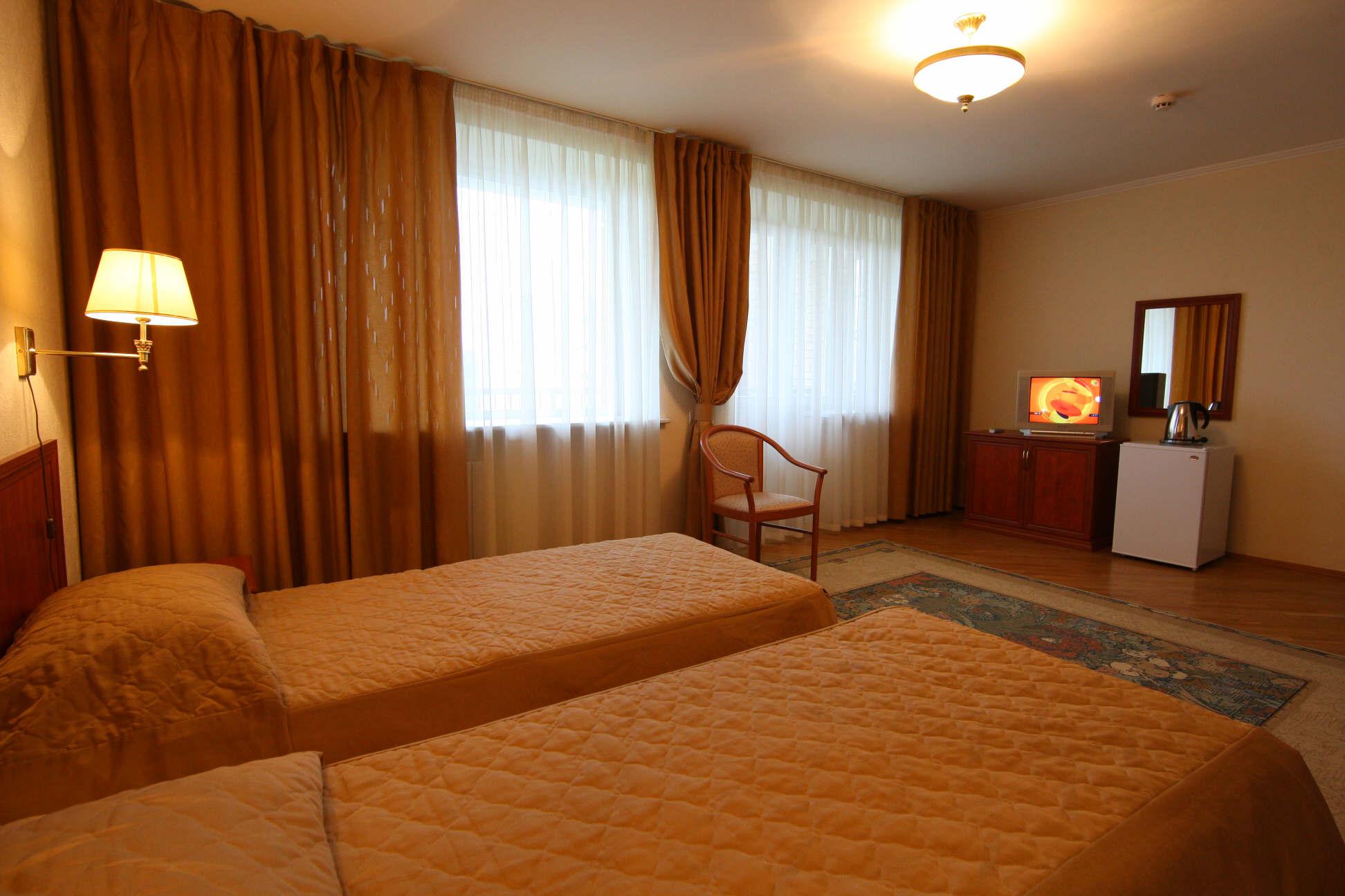 Однокомнатный номер со всеми удобствами (холодильник, телевизор, душ, совмещенный с санузлом, 2 кровати раздельные, 2 стула, стол, 2 тумбочки, шкаф для одежды и обуви, посуда: графин, 2 стакана, половое покрытие - паркет). Дополнительное место - мягкая раскладушка. Внимание! Номера без балконов.