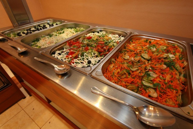 Для гостей, проживающих в корпусе № 1, 3, 4, 5, организовано 3-х разовое питание по системе «шведский стол». На «шведском столе» предусмотрен разнообразный ассортимент блюд: холодные закуски, горячие блюда, «сладкий стол», напитки, фрукты по различным диетам. Для отдыхающих, которые страдают сахарным диабетом, предусмотрено 5-разовое дробное питание.