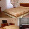 В номере: две кровати односпальные (или двуспальная), ТВ, холодильник, чайник, посуда, телефон, фен, душевой поддон.