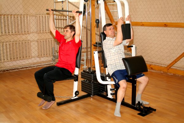 К вашим услугам универсальный спортивный зал площадью 648кв.м. высотой 10,5 м со специальным напольным покрытием. Зал оснащен разнообразными современными тренажерами, спортивным оборудованием и инвентарем, предназначен для занятий настольным теннисом, гандболом, баскетболом, бадминтоном, футболом, большим теннисом. Зал имеет комфортные раздевалки, сан.узлы, души. Высокохудожественное оформление зала, дизайн создает благоприятный психологический климат. Занятия в спортивном зале проходят под контролем опытного инструктора лечебной физкультуры.