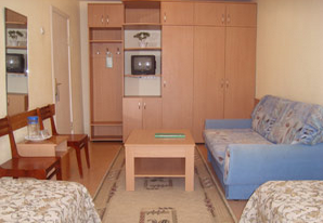 Номерной фонд: для проживания предлагаются номера различной категории с современным интерьером: одноместные, двухместные, полулюкс и люкс.