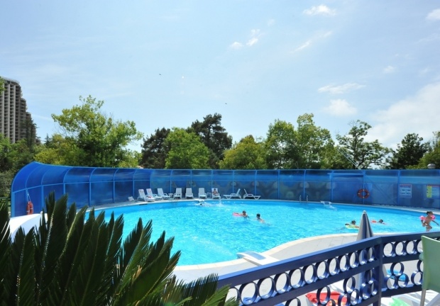 Пансионат «Олимпийский-Дагомыс» имеет открытый бассейн с подогревом, детский бассейн, крытый бассейн с сауной.