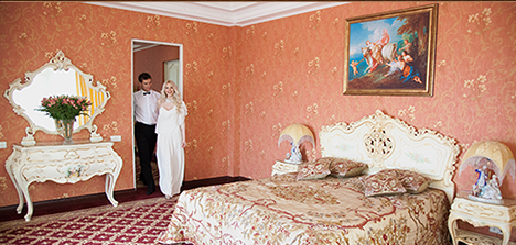 Номера расположены в главном 4 корпусе на 6, 7, 8 этаже, рассчитан на проживание двух человек, предусмотрены дополнительные места. Номер выполнен по уникальному дизайнерскому проекту, обставлен классической итальянской мебелью. Общая площадь с террасой 180 кв.м. В санузле площадью 9 кв.м. унитаз, биде, раковина, гидромассажная джакузи, душевая кабина. С террасы площадью 120 кв.м. Открывается вид на дендропарк санатория и море.