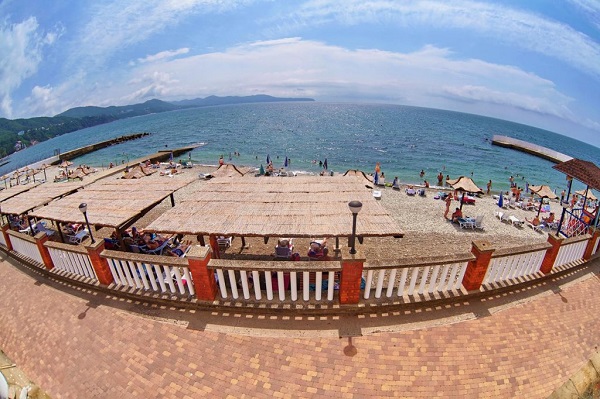 Пляжный комплекс простирается вдоль берега на 127 м в длину и 30 м в ширину на расстоянии 450 м от комплекса санатория. Оборудованный в соответствии с требованиями современности и ожиданиями отдыхающих, Центр предлагает: