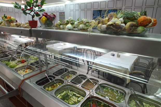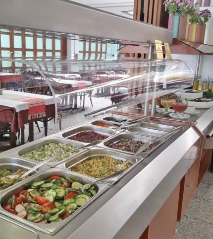 Питание в санатории предлагается по системе «Шведский стол». Она допускает возможность предложить отдыхающим свыше 40 видов блюд на каждый прием пищи: утром, в обед и вечером. Проживающие в центре могут выбрать подходящее питание, исходя из предпочтений и особенностей организма. Разнообразие салатов, закусок, первых и вторых блюд, десертов порадует многих, также, имеется диетическое меню.