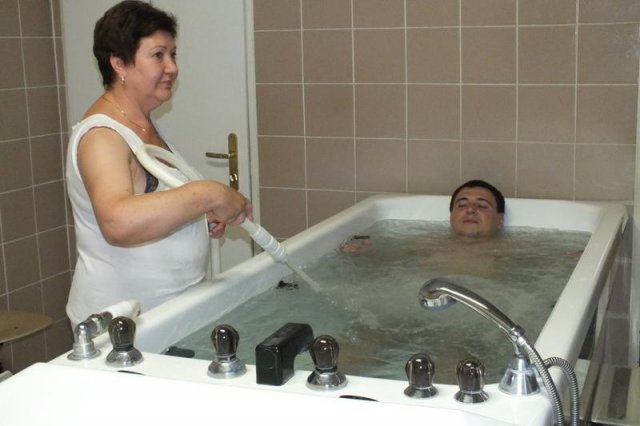 Достаточное оснащение гидротерапевтического отделения санатория «Белая Русь» позволило вывести водное лечение на высокий уровень. Центр имеет специальный бассейн для терапии, лечебные души, гидромассажные приборы, изумрудные ванны. Для комбинированных водных процедур применяются ванны Hubbard (Словакия), «Конус». Используется аппарат по очистке кишечника и солевая камера.