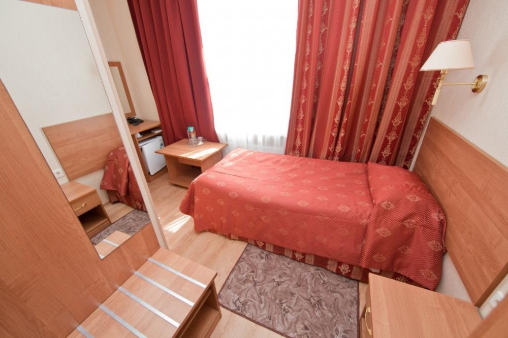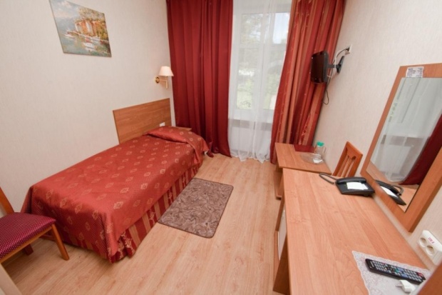 Комната: односпальная кровать, телефон, фен, телевизор, холодильник, мини-бар, эл. чайник, посуда.